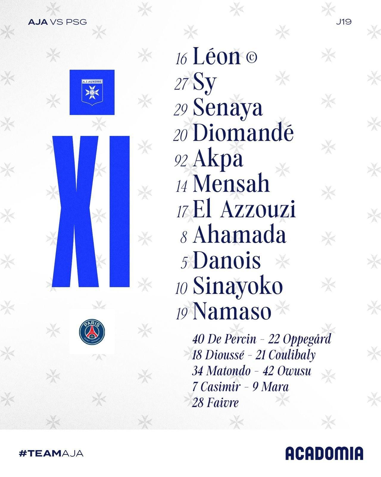 欧塞尔首发:16-莱昂、27-拉明-西、20-迪奥曼德、29-斯纳亚、92-阿克帕、14-门萨、17-阿祖齐、8-艾哈迈达、5-达努瓦、10-西纳约科、19-纳马索