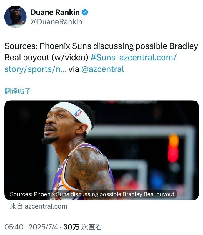 如今根据太阳队记Duane Rankin报道,太阳已经与比尔开始讨论买断的可能性,双方已经开启买断谈判。只是如果想要达成买断,需要比尔放弃剩余2年1.108亿美元的部分保障薪资。